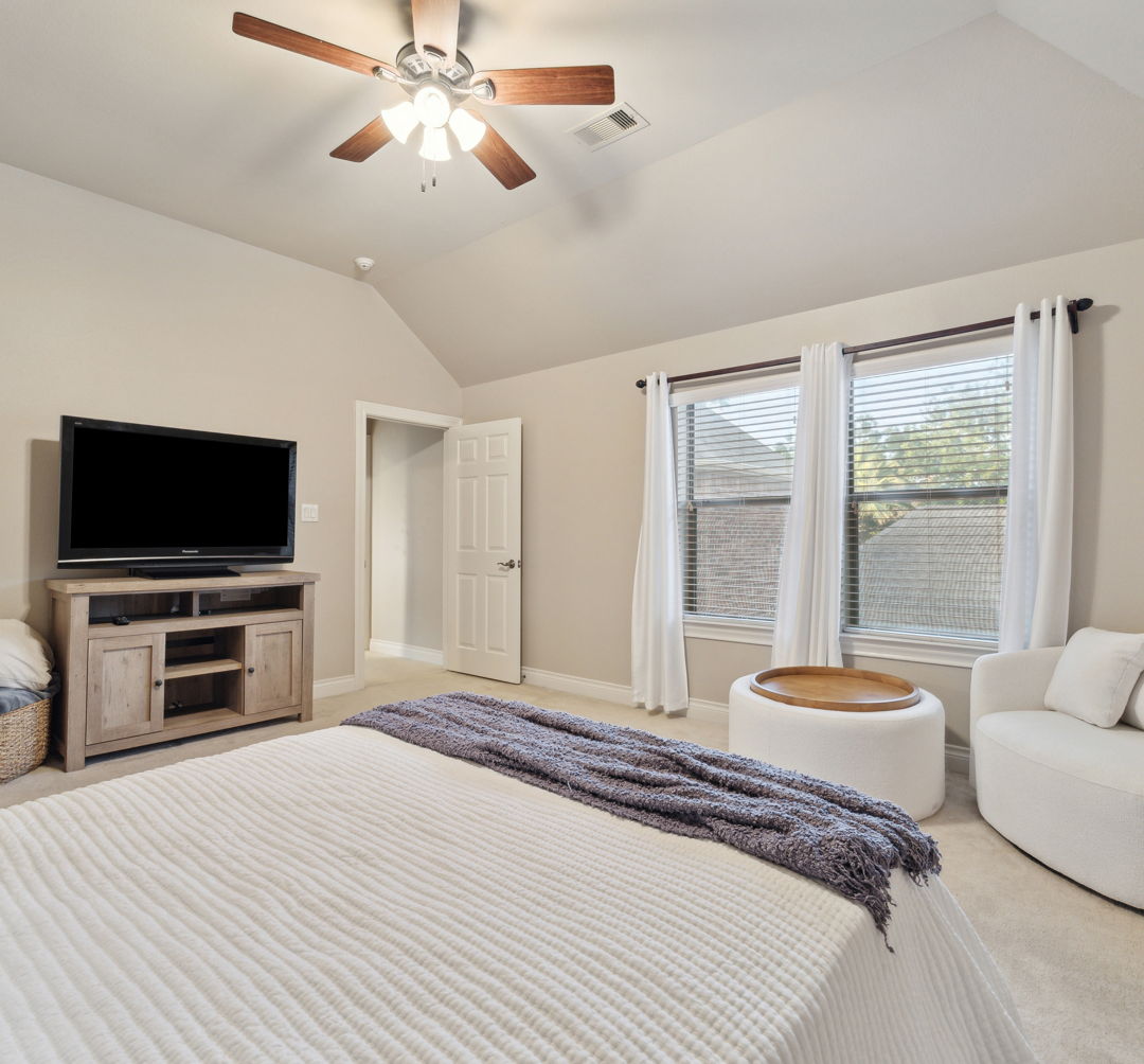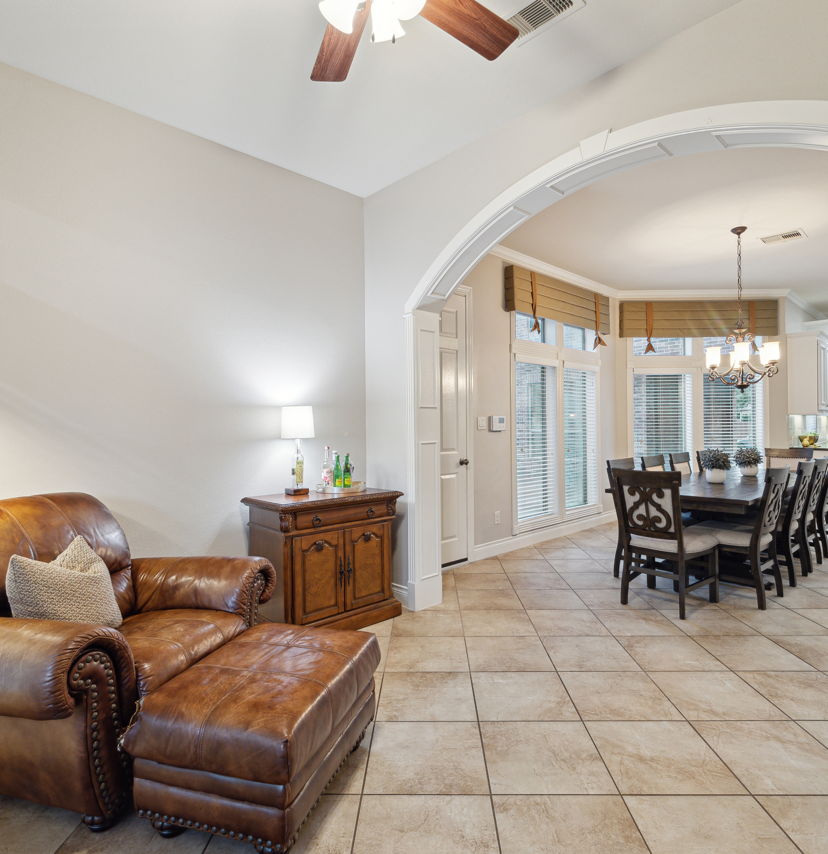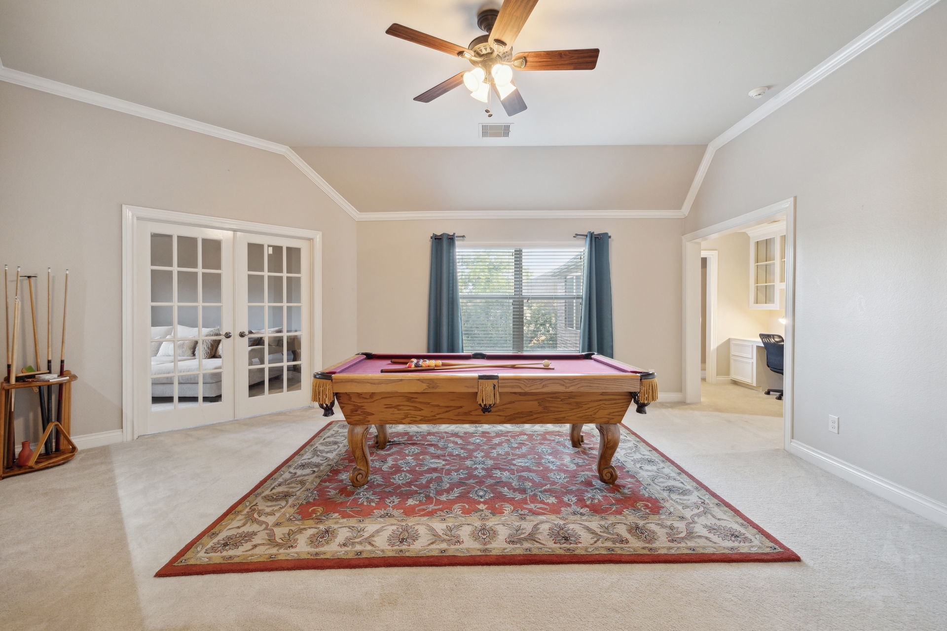 It's movie time. Your family will love watching the latest releases in this fantastic media room, featuring plush carpet, decorator paint, a ceiling fan with lights, and surround sound wiring.